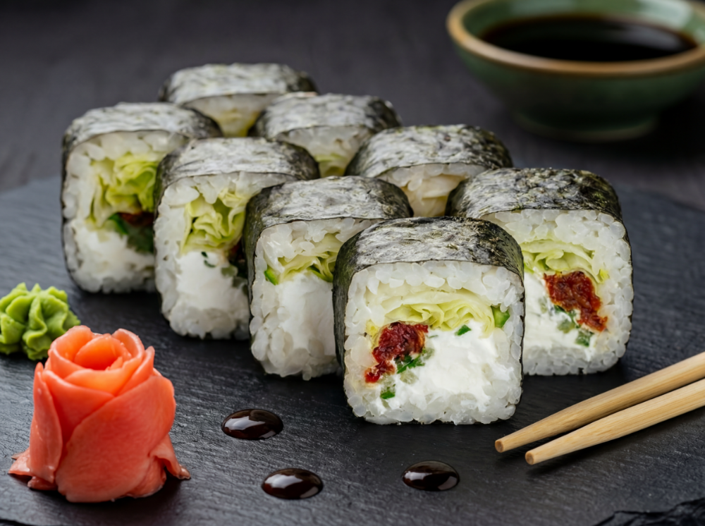 Рис, норі, сир вершковий, в'ялений томат, салат айсберг, огірок (8 шт.)