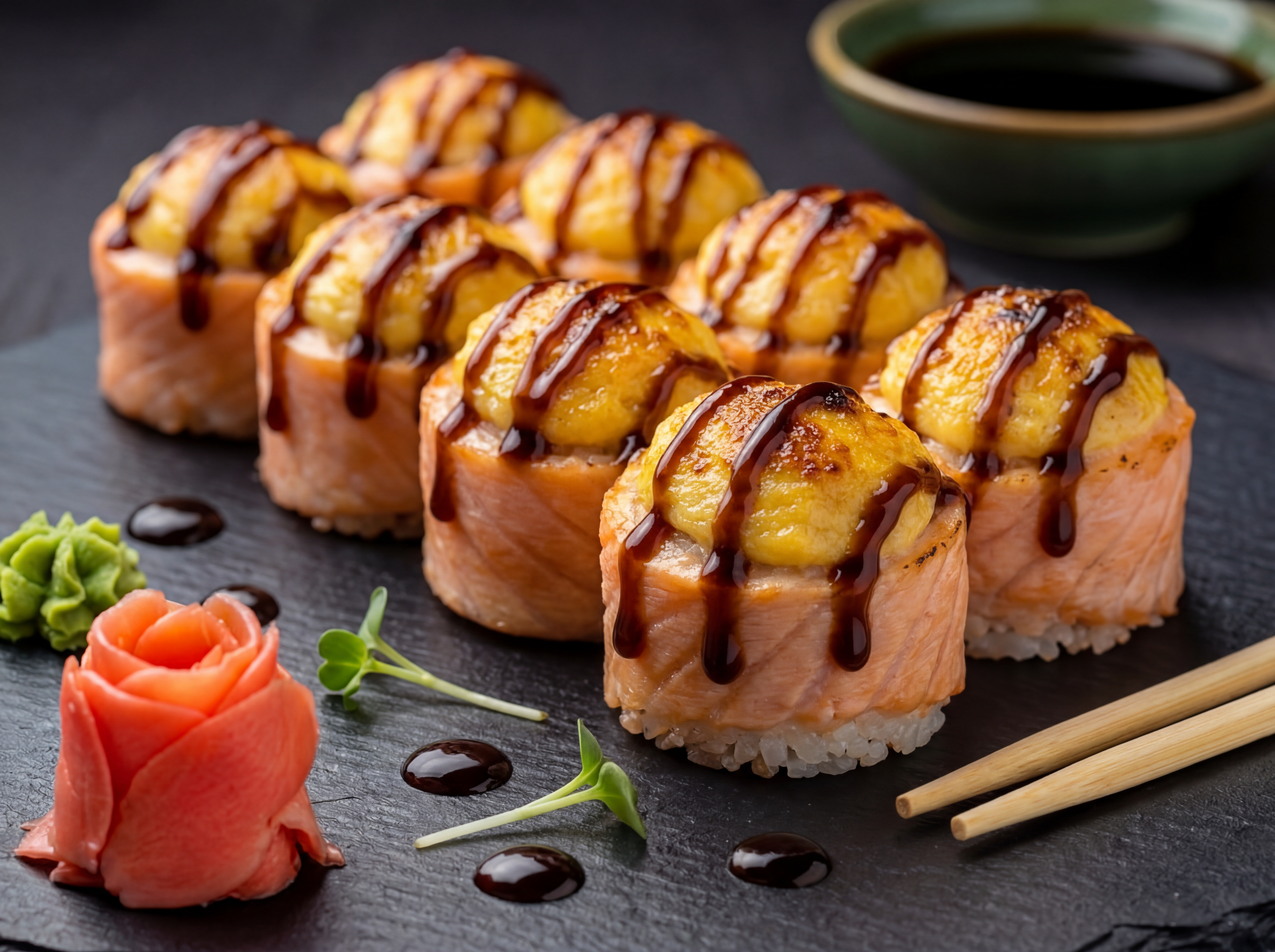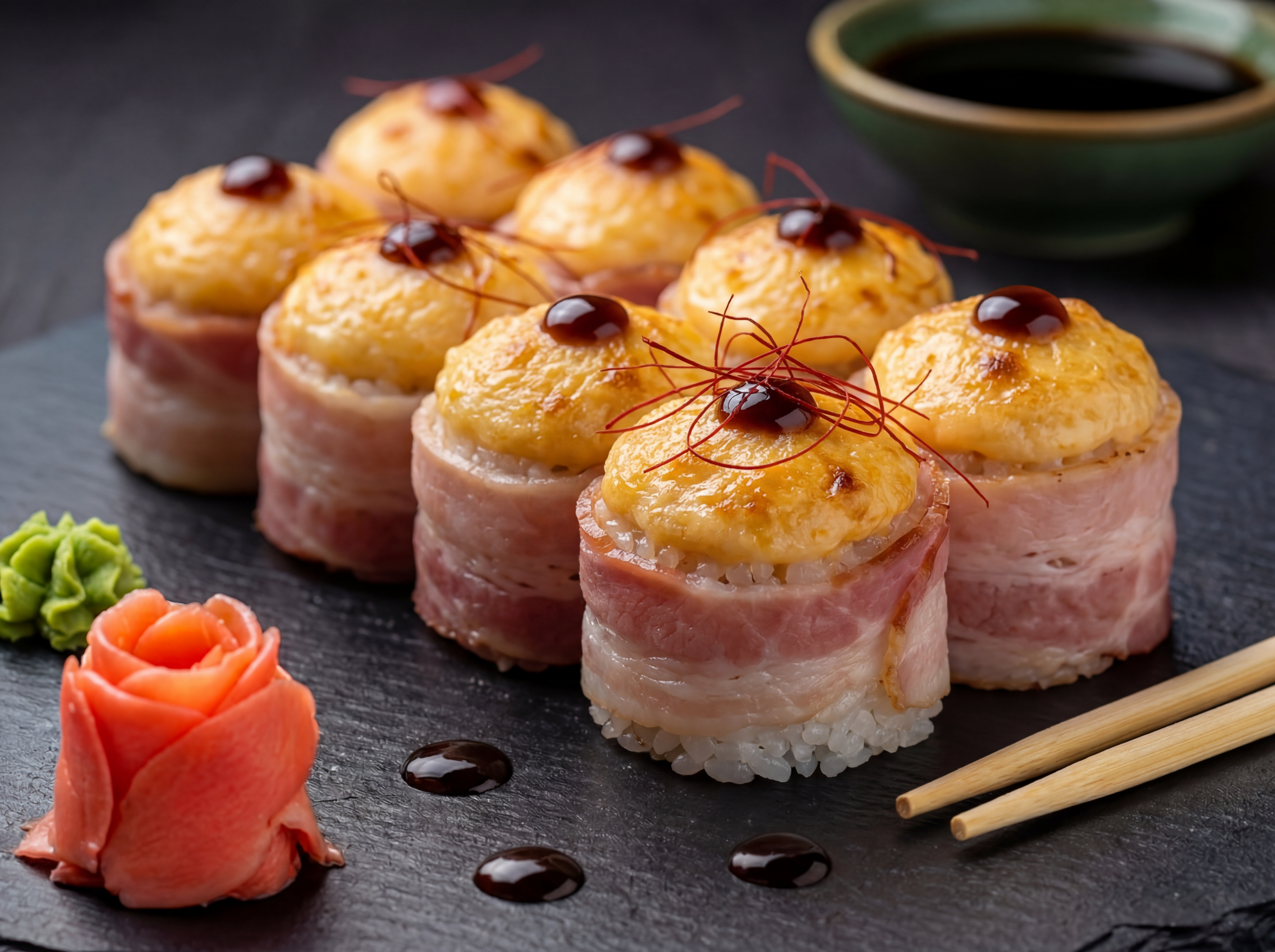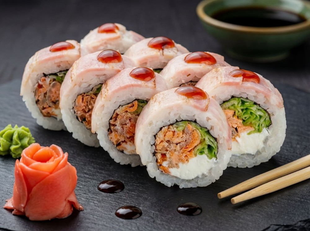 Рол з беконом і лососем теріякі