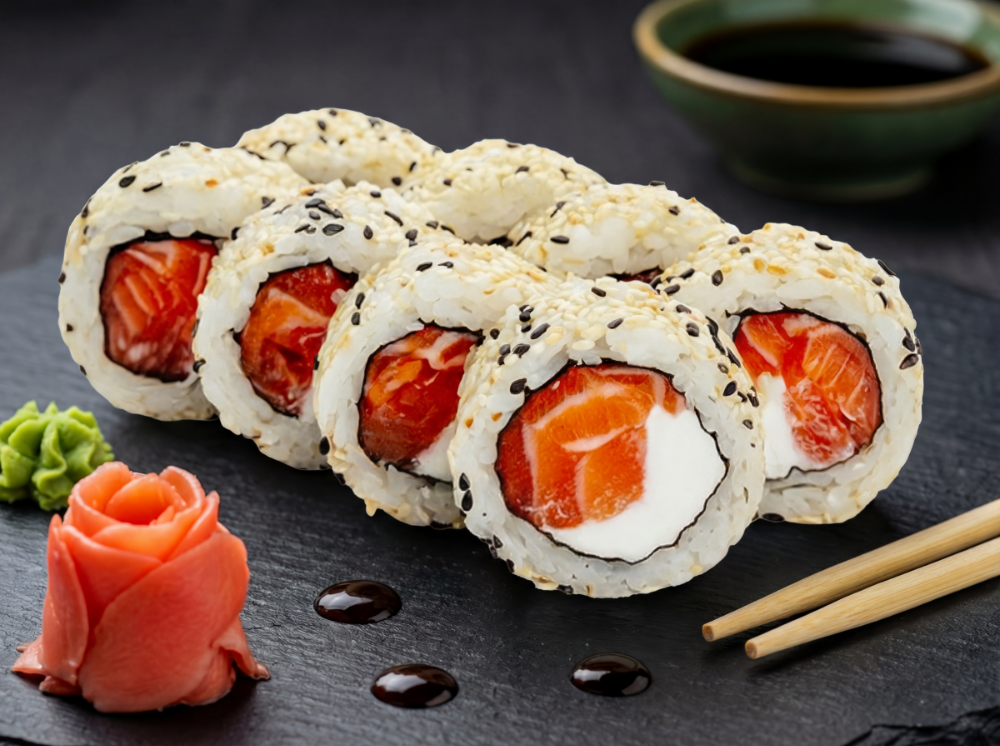 Вершковий сир, лосось, кунжут білий, кунжут чорний (8 шт.)