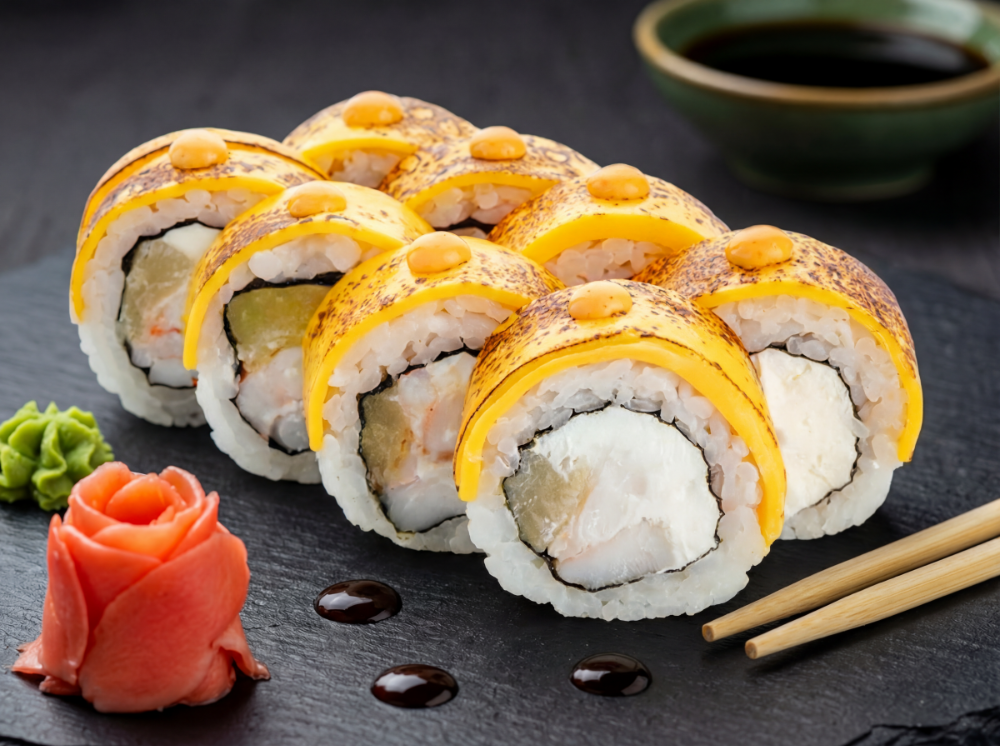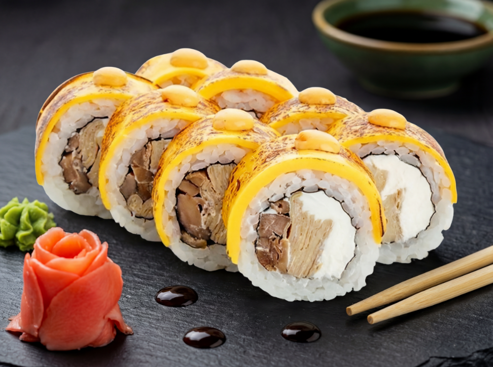 Сир вершковий, шиїтаке, японський омлет, сир чеддер, соус (8 шт.)